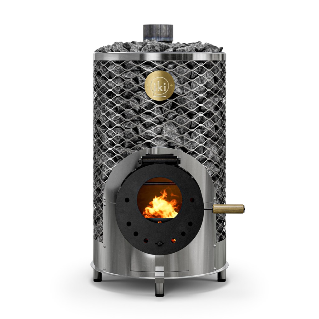 Finnish high-quality craftsmanship, sturdy stainless steel mesh frame, and industrial strength steel pipe guarantee the durability and safety of our sauna heaters. Practical design details and quick heating time make IKI wood burning heaters a pleasure to use: the spacious furnace allows you to load the heater with plenty of firewood at once.